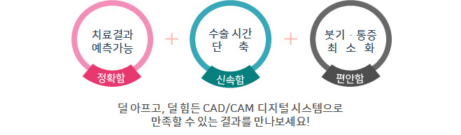 개인별 진단 결과에 따라 치료의 기간이나 과정은 달라질 수 있습니다. 모든 시술 및 수술 후에는 개인에 따라 염증, 과다출혈, 신경손상 등의 부작용이 있을 수 있으니 충분한 상담 후 치료를 받으시기 바랍니다.